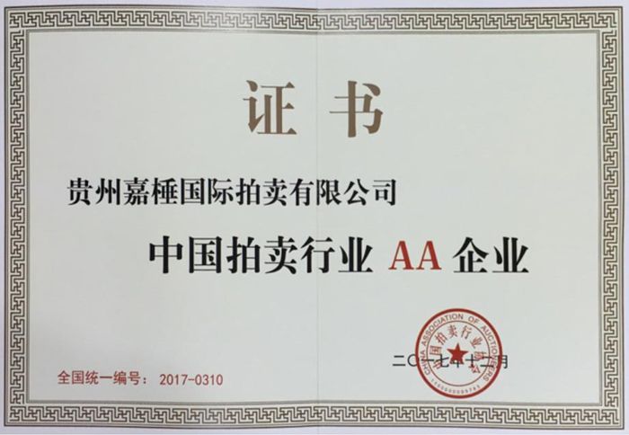 貴州嘉棰國際拍賣有限公司是主要從事動產、不動產、無形資產和文物藝術品拍賣業務的大型綜合性拍賣企業,是中國拍賣行業協會會員,貴州省拍賣行業協會理事單位,中國拍賣行業協會AA級資質企業,貴州省連續十一年重合同守信用企業,全省拍賣先進企業,貴州省公物拍賣人。公司充分利用多年來積累的客戶資源和全新的經營理念服務于貴州經濟發展。同時也為貴州省國有企業的資產重組、改制改造以及不良資產的變現,起到積極的作用。貴州嘉棰國際拍賣有限公司自成立以來,多次成功地組織了房產、土地、機器設備和各種物資等標的拍賣。并于2001年12月成為第一批貴州省高級人民法院及多家金融機構指定的拍賣企業。 公司下設產權部、市場發展部、財務部、人事部和辦公室?,F有員工11名,大專以上學歷員工占總數的90%,擁有精通業務的專門人才。有國家注冊拍賣師3名,公司工作人員大多參加過中國拍賣行業協會組織的從業資格培訓。公司堅持“客戶至上,執業嚴謹,公平競.....
